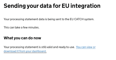 You should therefore continue to send PDF copies of your catch certificate, non-manipulation document and processing statement data to your importers as usual.