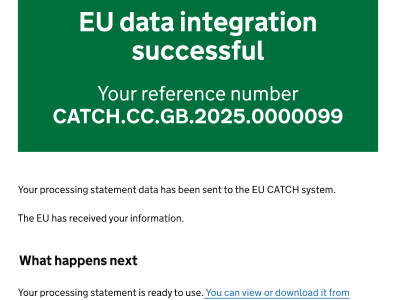 UK exporters must use the UK’s Fish Export Service to obtain validated catch documentation required for export. There is no obligation for UK exporters to manually enter this information, once validated, onto the EU’s ‘CATCH’ system.