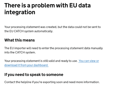 This process is likely to have minimal impact on your day-to-day operations and so in most cases exporters do not have to do anything differently to create documents in FES. The complexity of ensuring UK and EU IT systems align means the work is being done in phases starting with catch certificate data. Automated transfer depends on the CATCH system successfully accepting incoming data from FES.