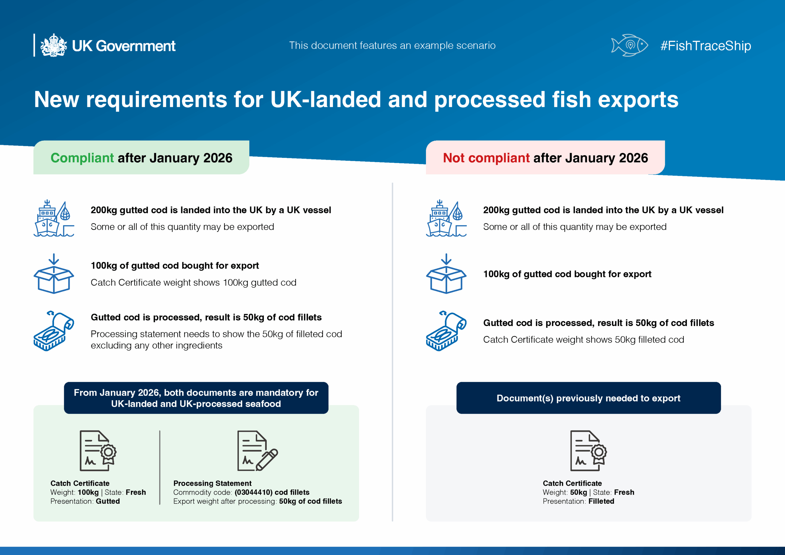 The new EU requirements have now come into force on 10 January 2026. All UK fishing authorities strongly advise you to familiarise yourself with the changes and start to provide the relevant information to your buyers when selling your produce. This will help minimise disruption to your business and keep exports moving.